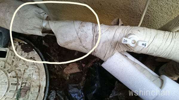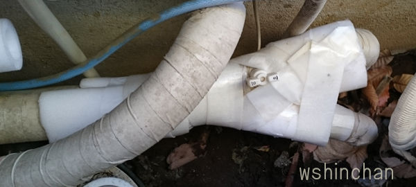 で、画像左と、右の配管は 凍結防止の断熱材がむき出しです。