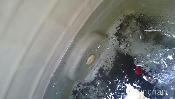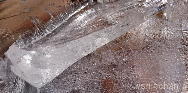 右側はタンクの側面で凍っていた氷です。