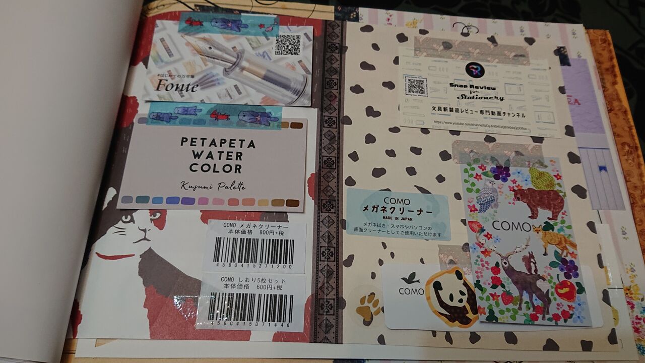 購入した商品のパッケージや見本・ノベルティなどを毎回スクラップして記録しています。