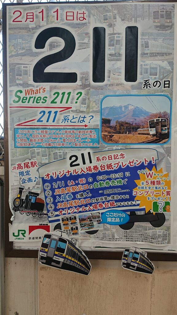 2023年02月11日 高尾駅イベント入場券ゲット★2月11日は211系の日★これから水道橋 世界らん展です 211系の日 JR中央線 券売機の使い方が…わからなくもたついてしまいました。(スミマセン・・・)この日は、高尾駅のイベント211系の日で、入場券を購入すると電車の用紙がもらえます。5枚もらうとコンプリート賞がもらえる。世界らん展が水道橋のプリズムホールで開催されていたので、行く前に購入。たくさん購入している人もいました~。高尾駅はこういうベントが時々あるので面白いです。高尾山駅ミステリー・謎に包まれたもう1つの【高尾駅】は実在したか? (PDミニブックシリーズ)川俣 晶株式会社ピーデー2019-03-07JR中央線沿線 なぞ解き地図昭文社2020-06-26 < 前の記事次の記事 >