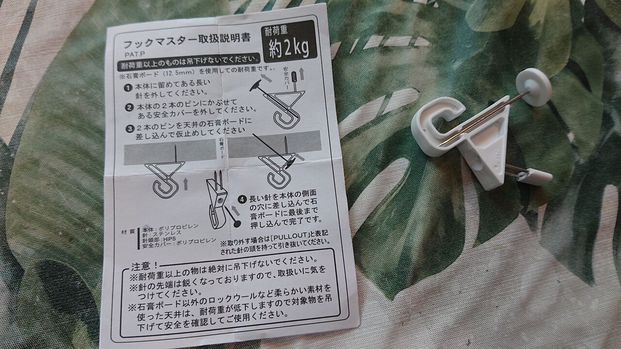 天井は、フックをかけるためのパーツをつける