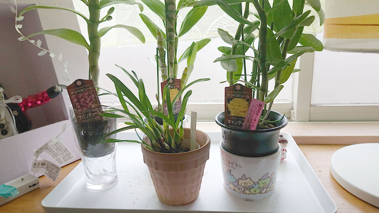 今回購入のデンドロビウムと、