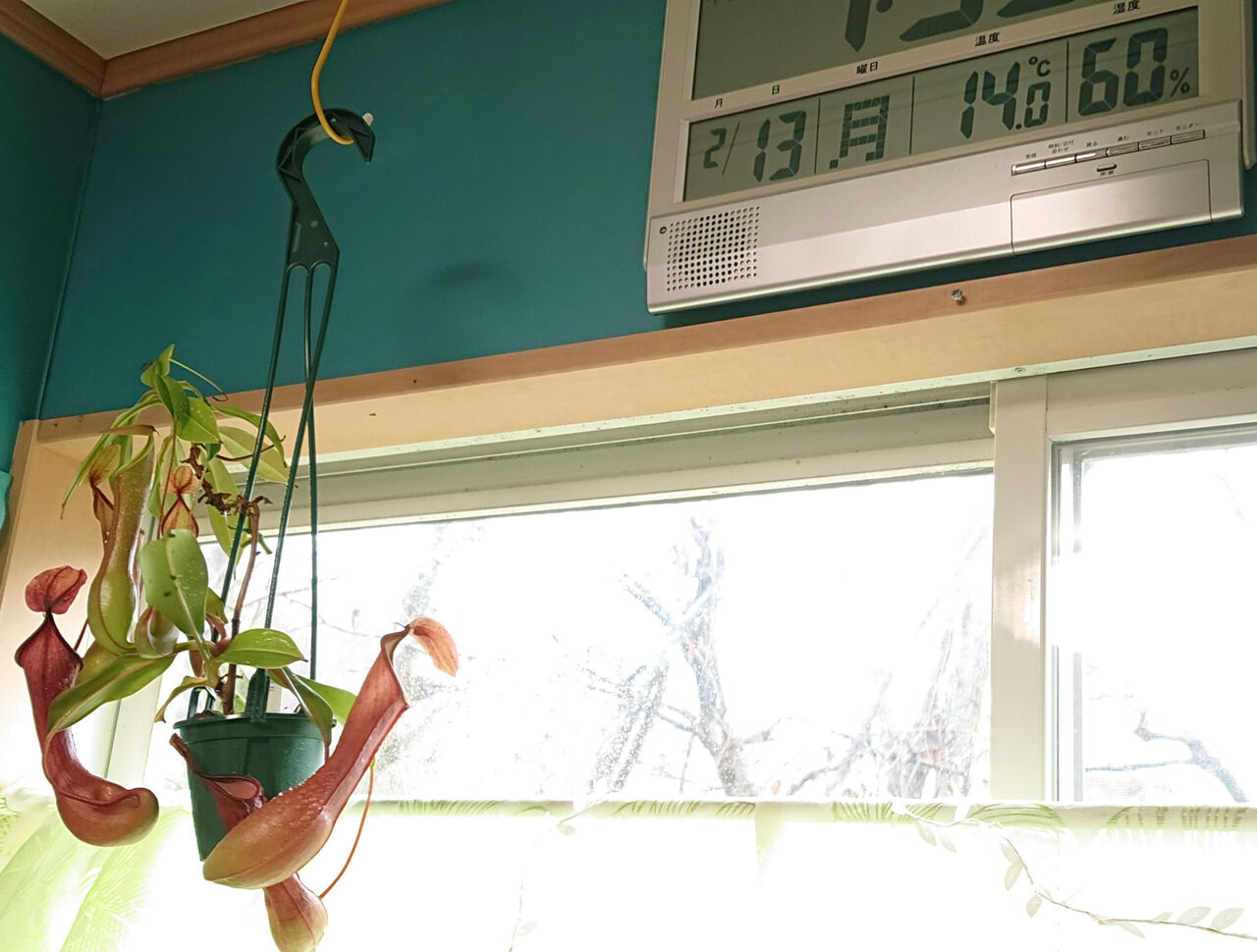温度は14度。この部屋は暖房がないのでこれ以上は上がらない。