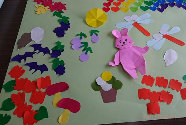 今回は、四季を模造紙で作ることになり、