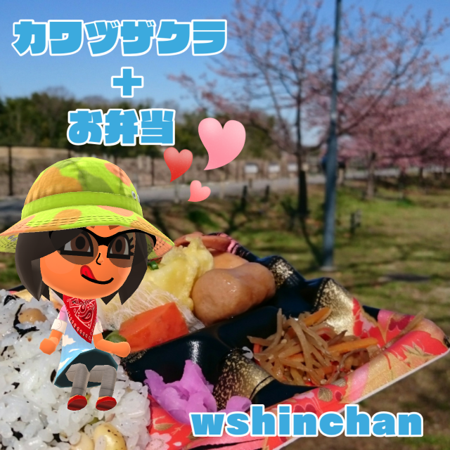 今回はお弁当の上にMiiを載せたかったのですが、立っているとご飯を踏んでいるようなので、座ったポーズにしました。