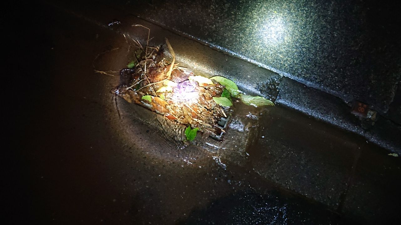排水溝の葉を よけておきました。