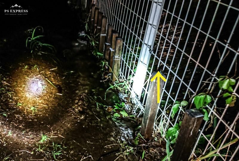 上流の我が家の雨水が入る溝を