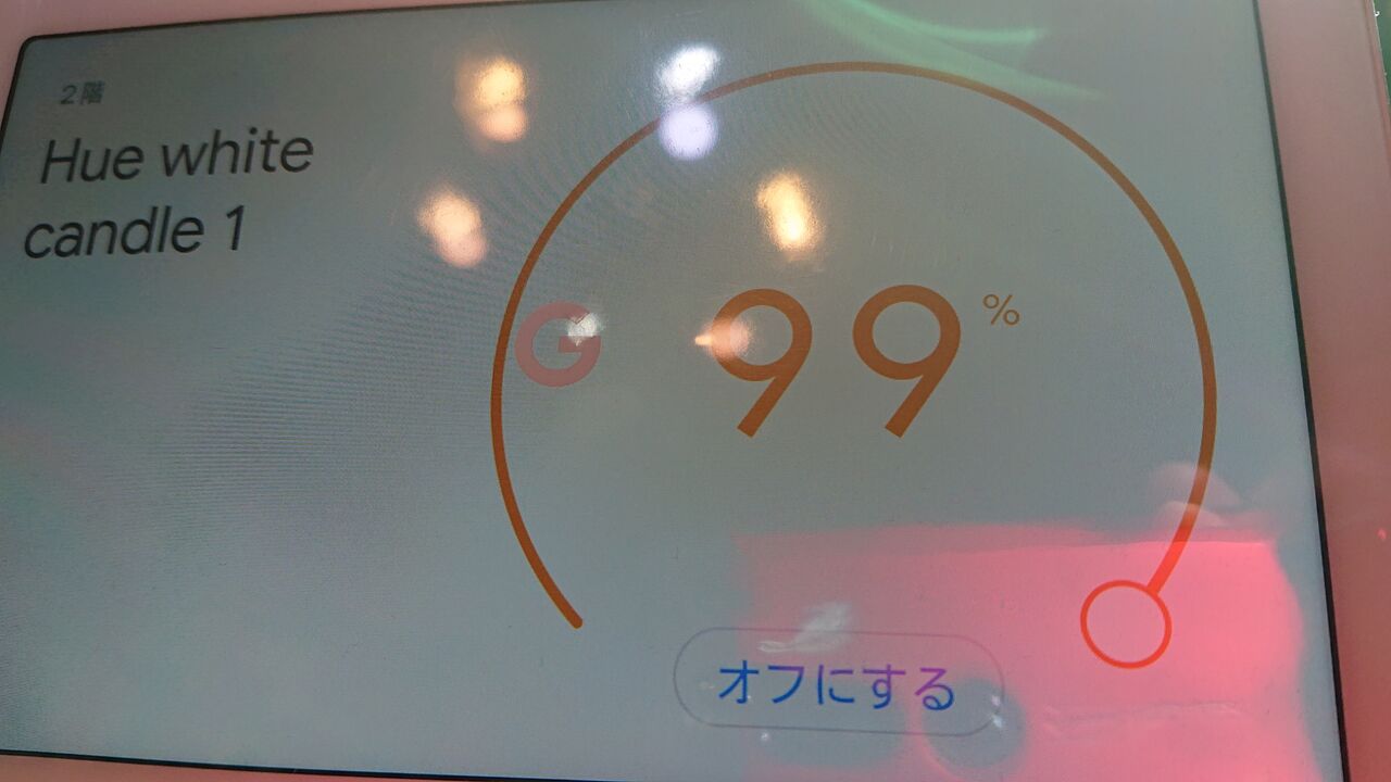 で、スマホもGooglenesthubも明るさの調節が出来る。