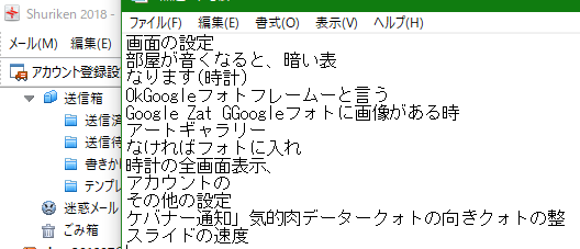 一太郎2021には付属されなくなったメールソフト手裏剣を愛用しており、