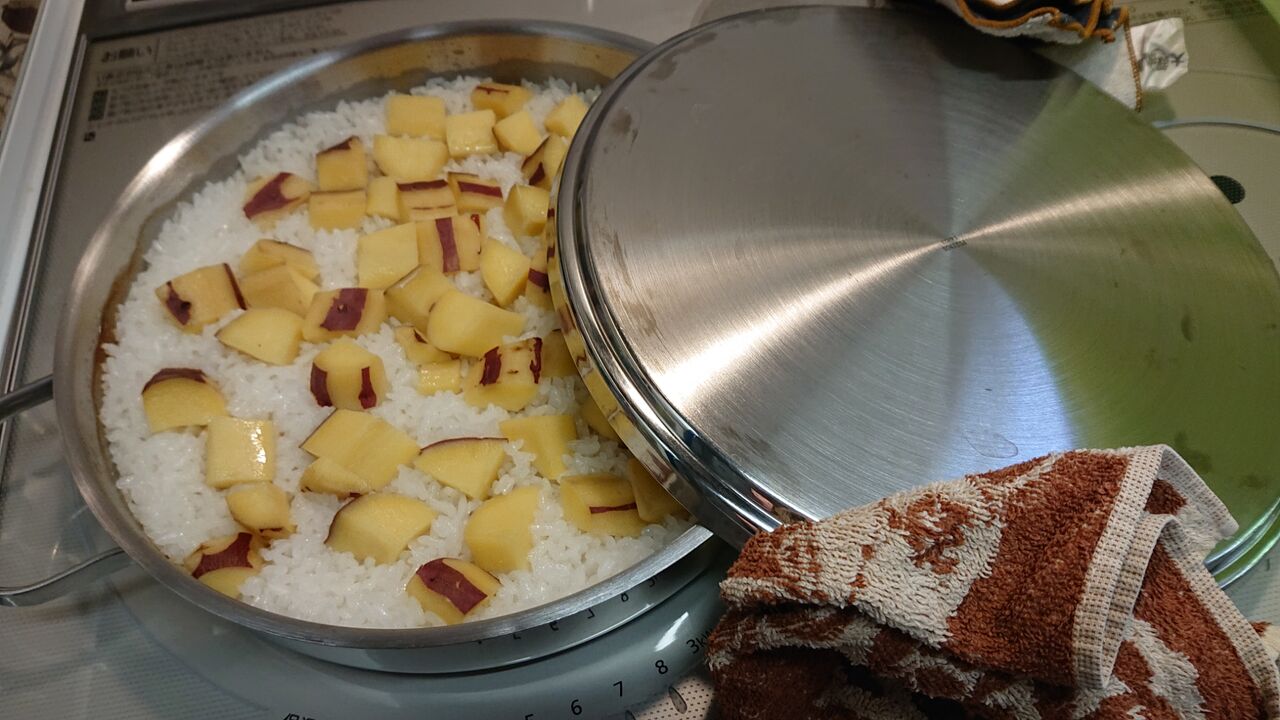 グリルでさつまいもご飯を作りました。
