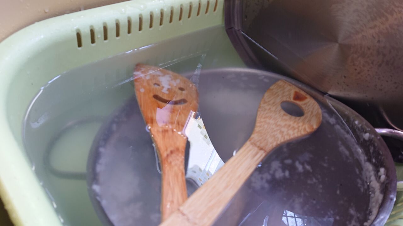 鍋ですが、急ぎで洗おうとするとサイドの米がかなり落ちない。