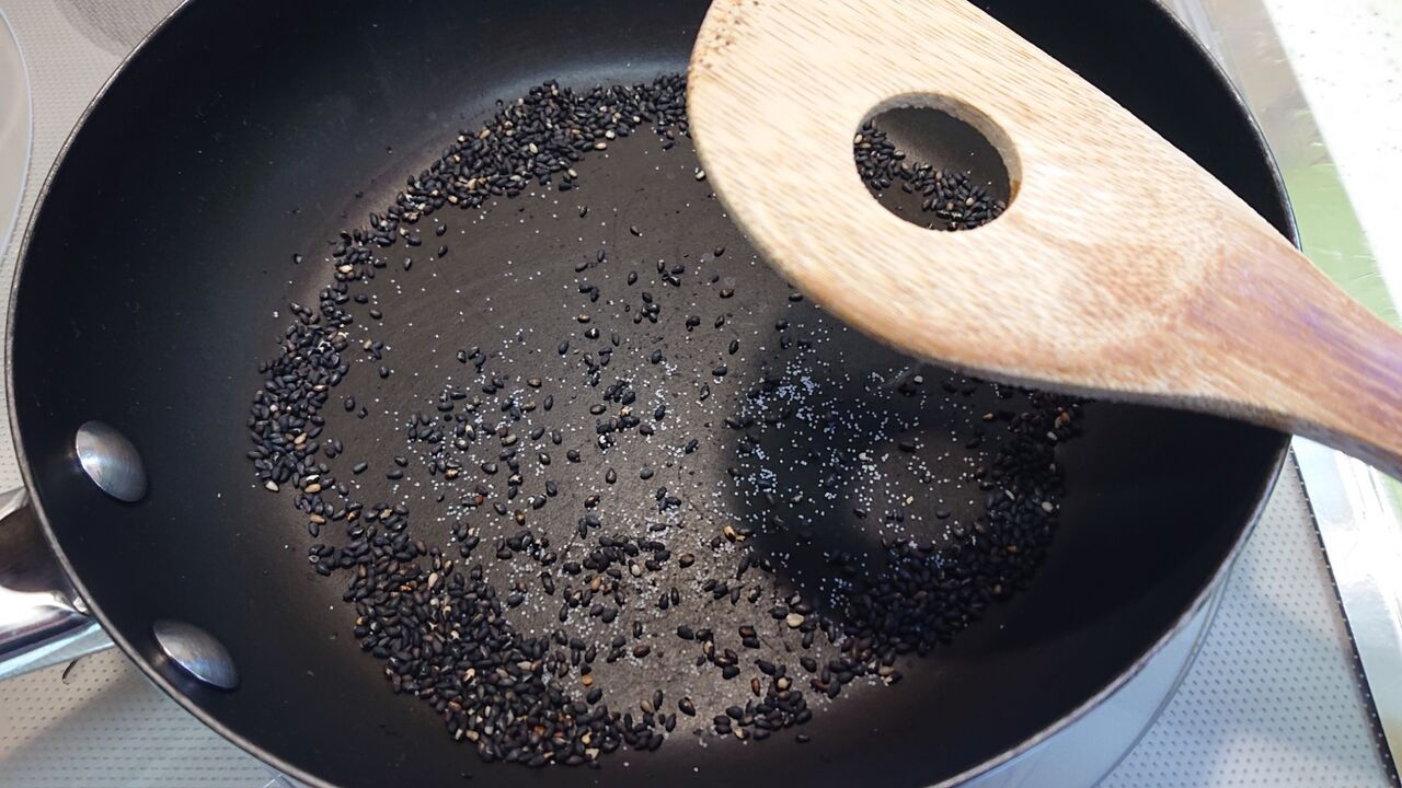ついでに黒ごまも炒る。