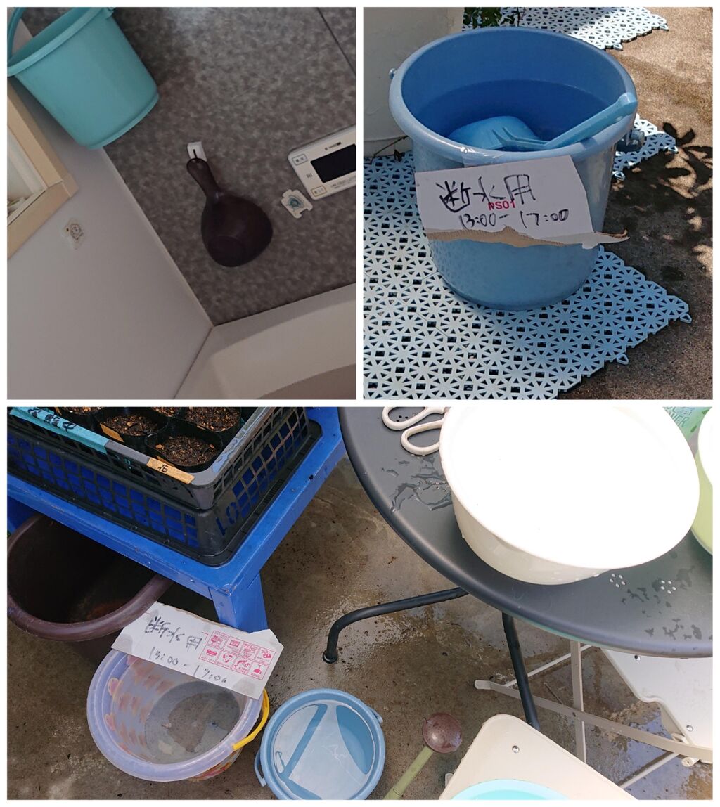 今日も暑い~メダカの水槽でも洗おうと外にいたらご近所さんが今日は断水だよね…と。